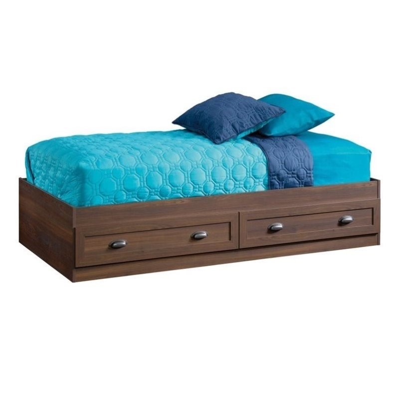 | Sauder - Beds - 418529 - Finish: Rum WalnutAccommodates twin-sized mattressConvenient under bed storage features two drawersSpecifications:Overall Product Dimensions: 15.5"" H x 40.6"" W x 76.7"" DProduct Weight: 142 lbs