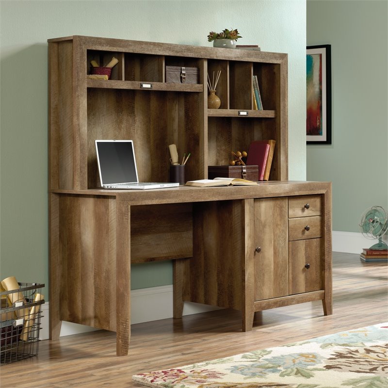 | Sauder Dakota Pass Computer Desk with Hutch in Craftsman Oak |