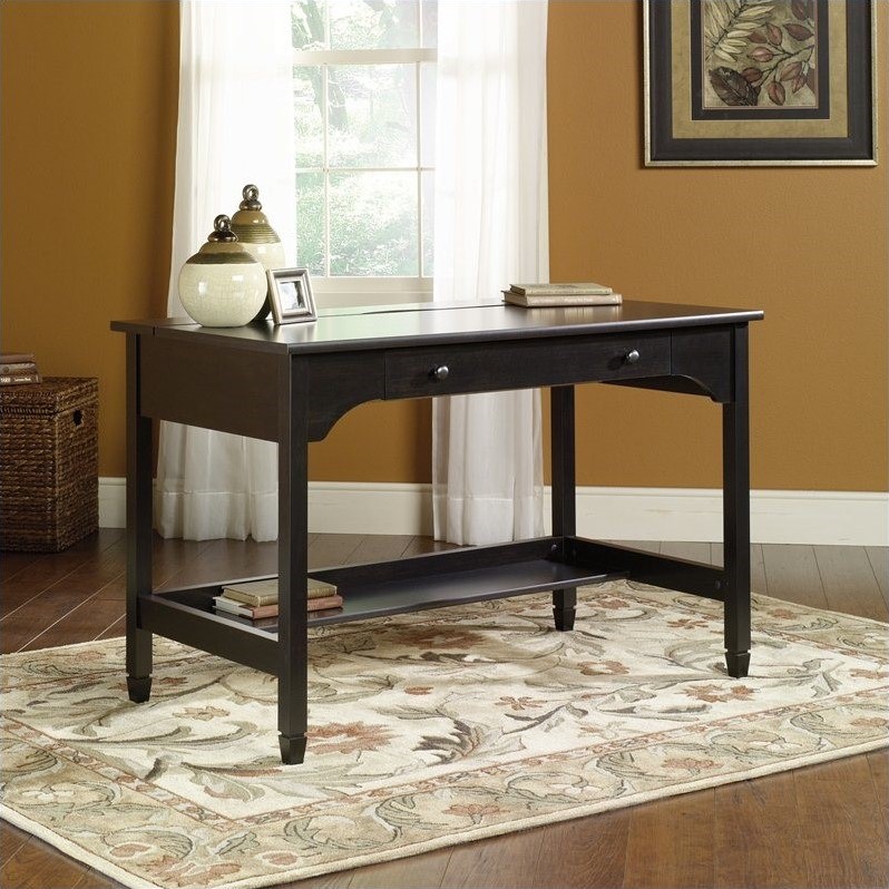 | Sauder - Writing Desks - 409045 - Estate Black finish; Slide-out drawer with full extension slides accommodates a laptop; Flip-up panel reveals Digital Dock™ for parking, recharging and synching mobile electronics; Convenient cord management; Solid wood accents. Specifications: Overall Dimensions: 29 3/8"" H x 46 5/8"" W x 24"" D; Weight: 83 lbs.